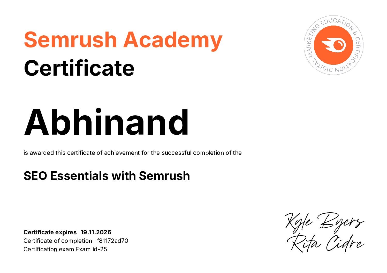 My Certifications are